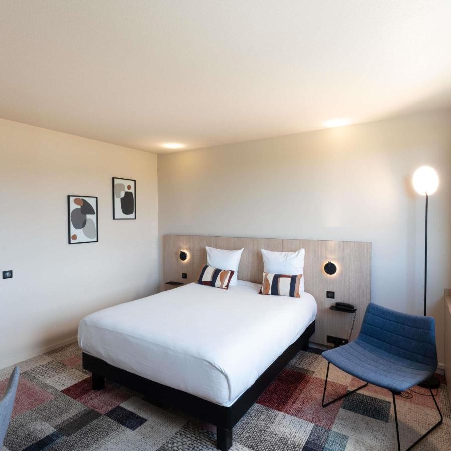 Die 91 Zimmer, die sich über mehrere Etagen verteilen, bieten eine entspannende Umgebung, die auf Ihren Komfort ausgelegt ist. Die Einrichtung setzt auf dezente Eleganz mit neutralen Farben und klaren Linien. Die Zimmer sind geräumig, klimatisiert, schallisoliert und verfügen über ein eigenes Bad sowie einen Flachbildfernseher. Einige Zimmer bieten einen schönen Blick auf die Bäume des Parks oder auf die ruhigen Gewässer des Doubs.