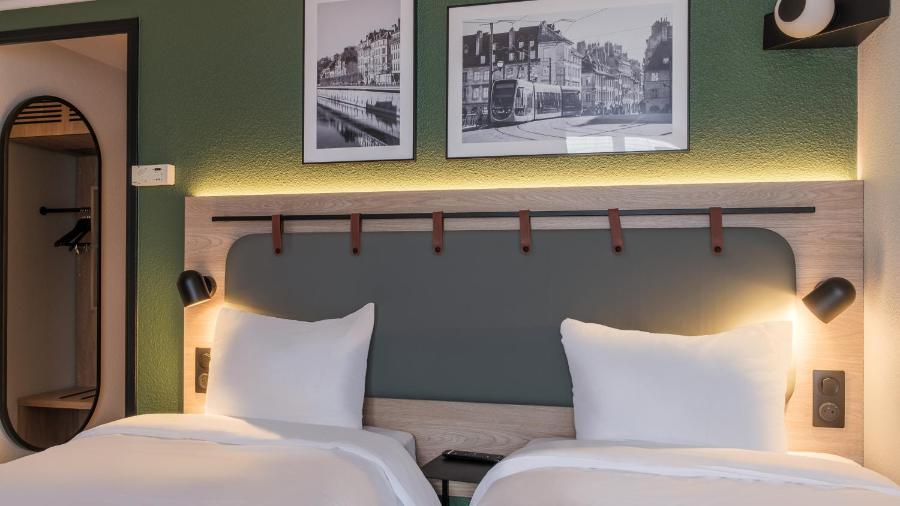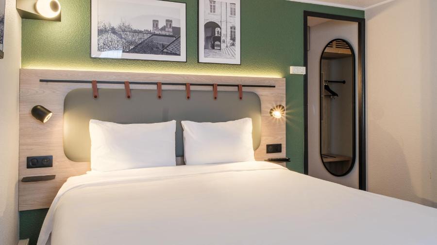 La struttura dispone di 43 camere suddivise in diverse configurazioni: letto matrimoniale, letti singoli o camere triple. L’arredamento privilegia tonalità sobrie e materiali semplici, con mobili pratici e contemporanei. Il comfort del letto, combinato a un buon isolamento acustico, permette di godere di un riposo di qualità dopo una giornata di viaggio o visite.